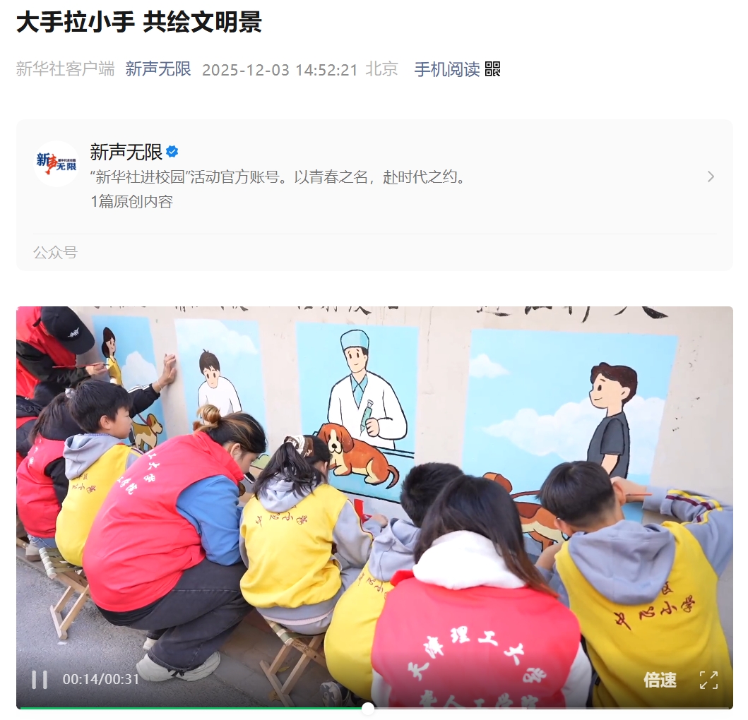 新华社客户端天津11月28日电(记者刘润芝)近日,一群来自天津理工大学聋人工学院的听障大学生与天津市和平区中心小学的小学生们相约天津市和平区南营门街道天兴里社区,共同创作主题墙绘,倡导文明养宠新风尚,美化社区公共环境。